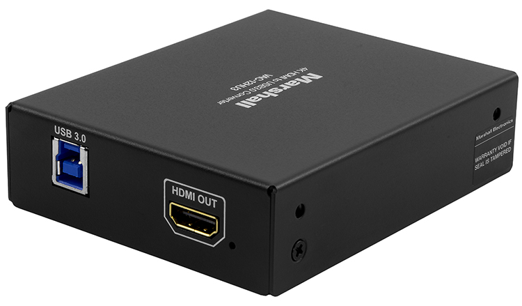 The VAC-12HU3 converts HDMI 2.0 input to USB 3.0 output with active HDMI loop-through for use in live screen capture, video conferencing, or any other professional PC-based applications. The VAC-12HU3 features a rugged and compact design for enhanced portability with power provided through the USB 3.0 output.