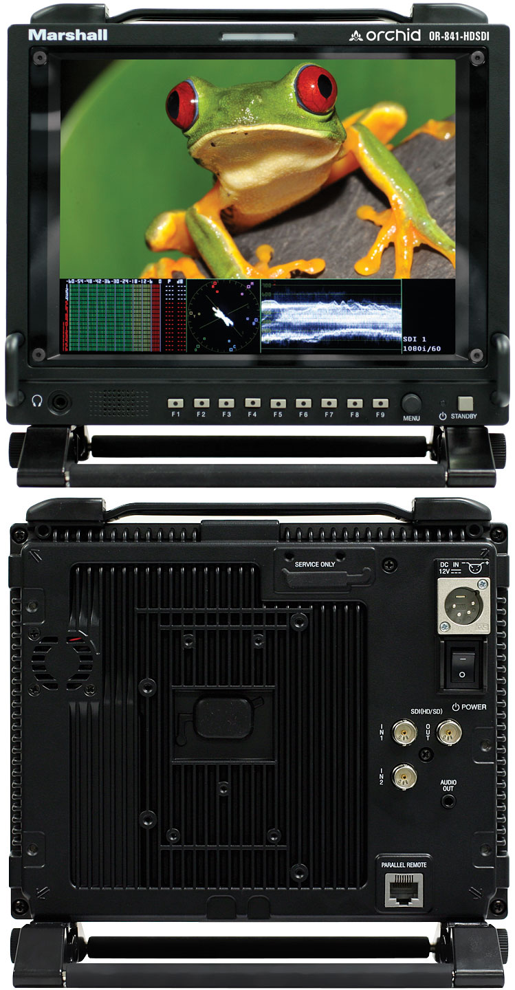 The OR-841-HDSDI 8.4" ORCHID® rack mountable / portable field monitor has all the features that customers have asked for and more. The OR-841-HDSDI is 4RU and has 9 user-assignable function keys as well as a rotary menu system.