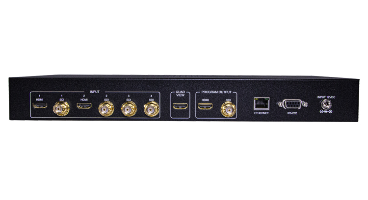 | Output Formats Supported | Quad-View Preview (HDMI): 720p50/59.94/60 1080i50/59.94/60 1080p25/29.97/30/50/59.94/60 3840x2160p25/29.97/30/50/59.94/60 Program (HDMI): 720p50/59.94/60 1080i50/59.94/60 1080p25/29.97/30/50/59.94/60 3840x2160p25/29.97/30/50/59.94/60 Program (SDI): 720p50/59.94/60 1080i50/59.94/60 1080p25/29.97/30/50/59.94/60 |